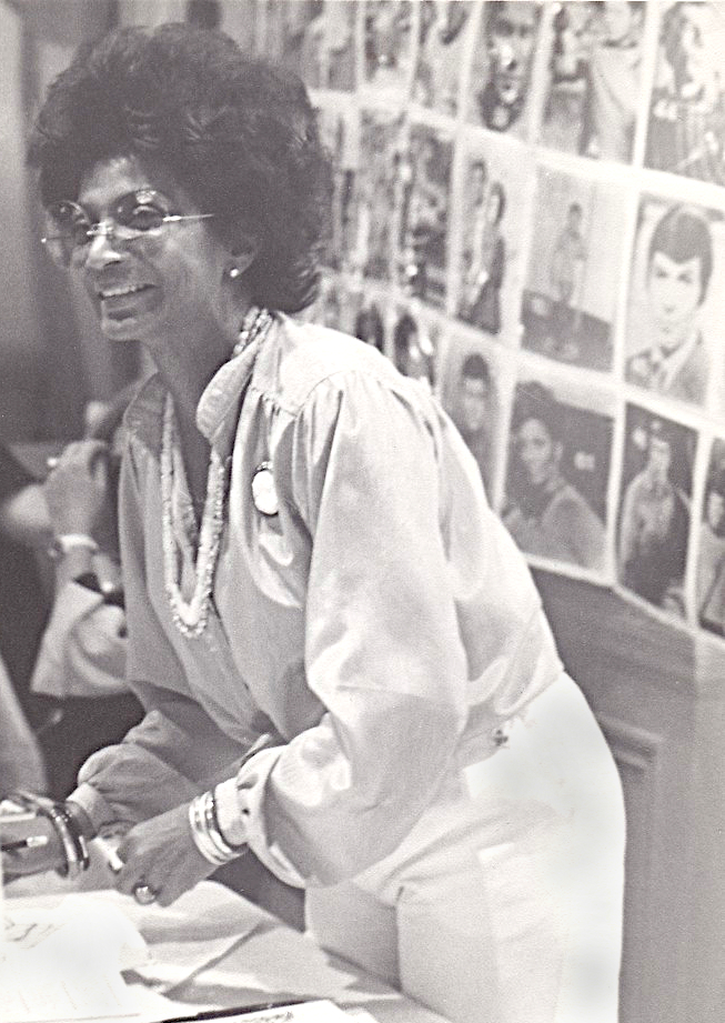 Another attendee, Wilda Robinson, apparently convinced Nichelle Nichols to take a copy of her spec script. “Wilda’s script has gone to Hollywood with Nichelle Nichols, who was Lieutenant Uhura in the series, with her promise to read it and submit it to Gene Roddenberry’s ‘think tank’ if it lived up to the promise she saw in the few pages she had read.”